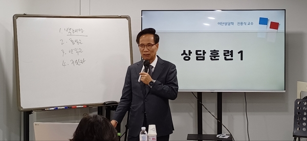 한상협 협회장 진용식 목사가 신입생 과정 수강생들을 대상으로 이단상담학 강의를 진행하고 있다.